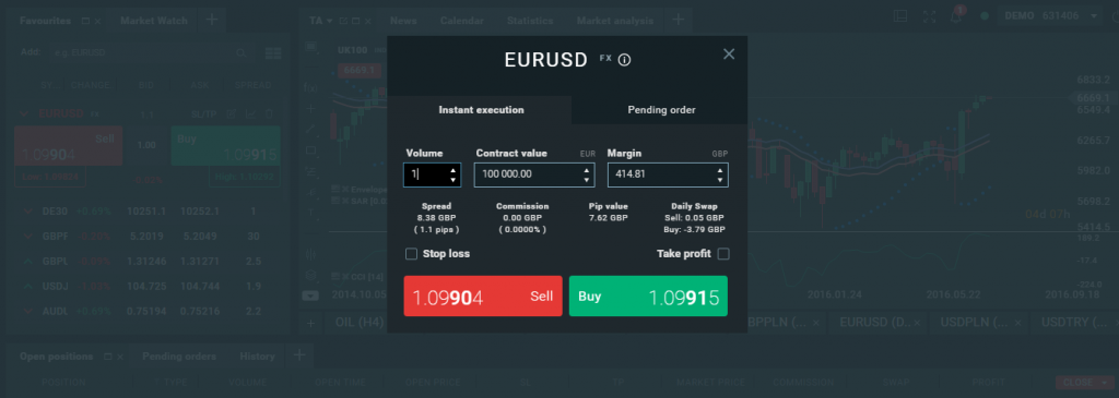 Swap points may be calculated manually after calculating the value of a pip, but one of the xStation’s unique functionalities is the inbuilt calculator, which helps traders with many automatic calculations depending on the market the trader would like to trade on as well as the volume.